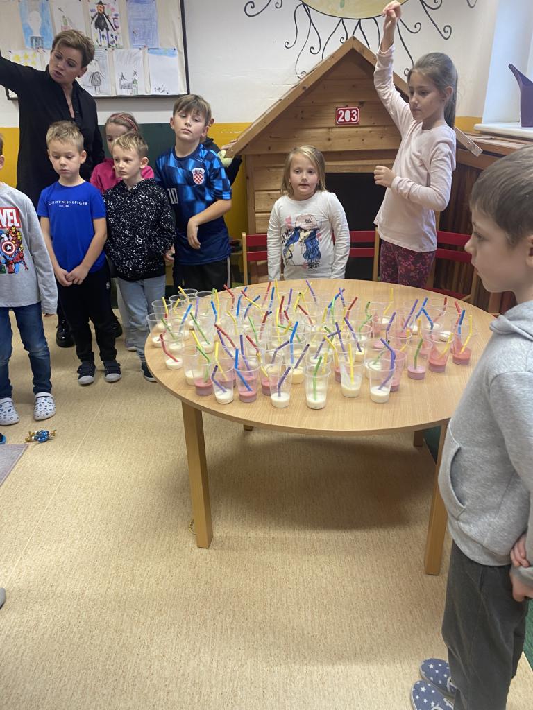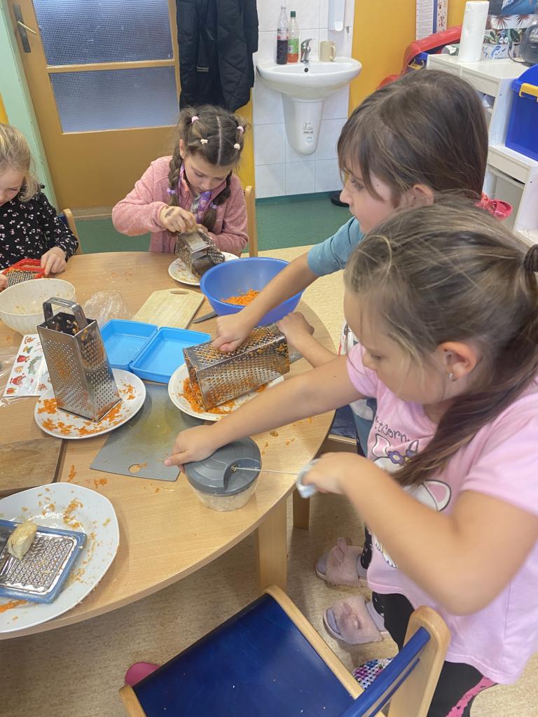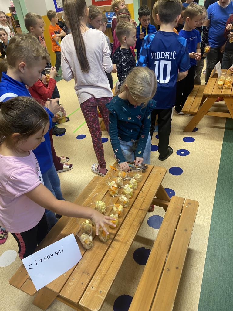 Akce Vaříme zdravě. Děti vařily po skupinách a nakonec byla ochutnávka. Citronci - Mrkvová pomazánky Melounci- Mléčný koktejl Borůvky - ovocný salát