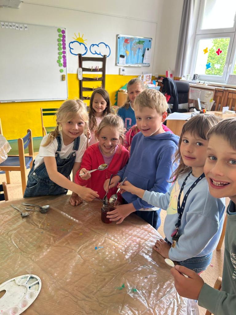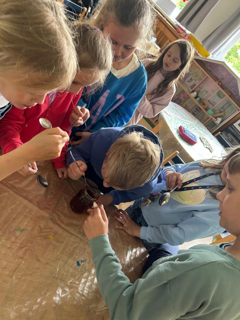 Oddělení Berušek ve školní družině si nasbíralo pampelišky na med, který jim moc chutnal.