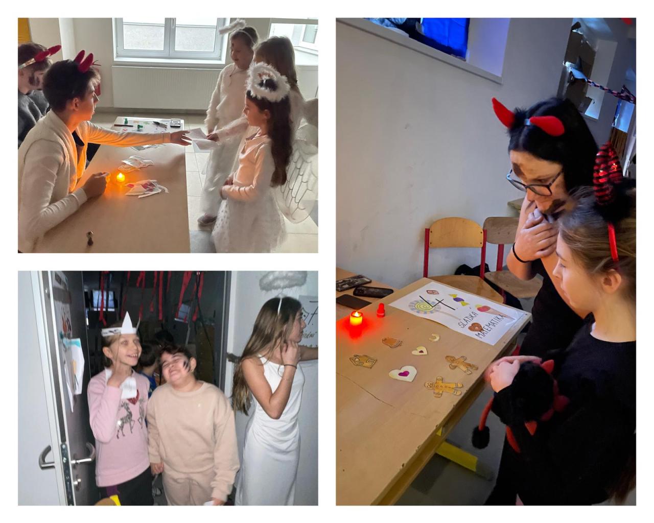 Dneska se v suterénu naší školy konala tradiční Mikulášská stezka, kterou s velkým nasazením připravili žáci deváté třídy. Pro děti z prvního stupně vytvořili pestrou cestu plnou úkolů, soutěží i čertovských výzev.
