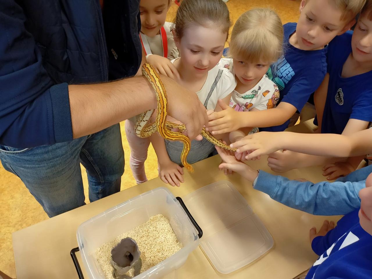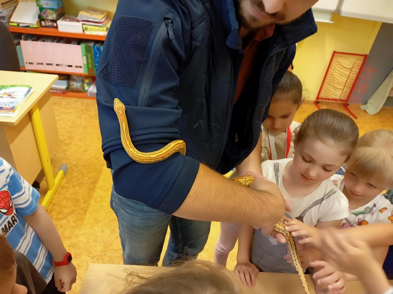 V pátek 24.5. nás potěšila návštěva milých rodičů, kteří nám přišli představit rodinného mazlíčka Mavericka. Děti byly nadšené, nikdo se nebál... takže rodiče... shánějte terárka ????. Manželům Věkovým moc děkujeme za jejich ochotu a čas.