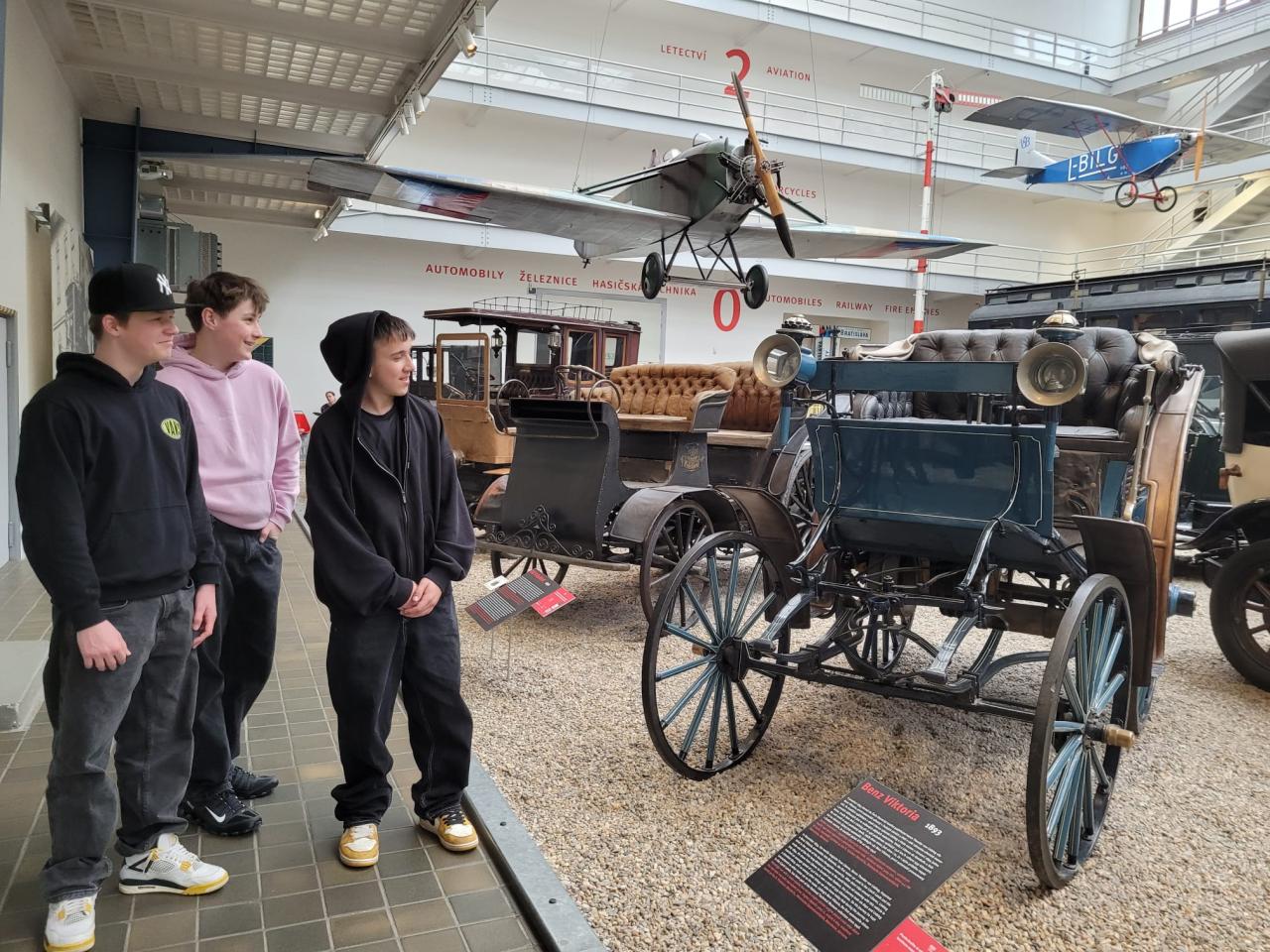 Žáci 8. třídy navštívili Národní technické muzeum, kde se mohli na vlastní oči přesvědčit, že historie není jen o textech v učebnicích. Prošli si expozice plné lokomotiv, motocyklů i letadel a objevovali, jak se technika vyvíjela v průběhu času.