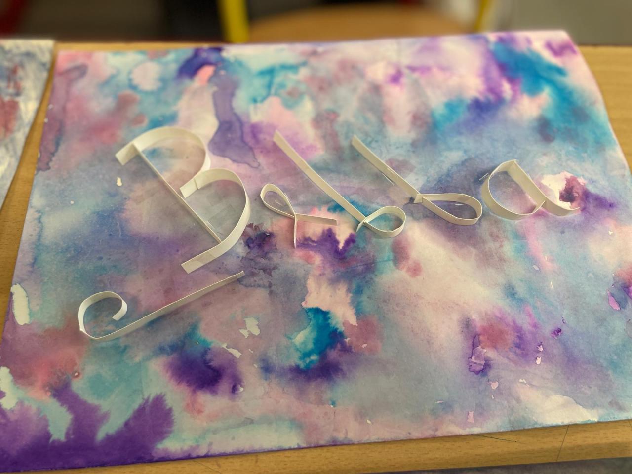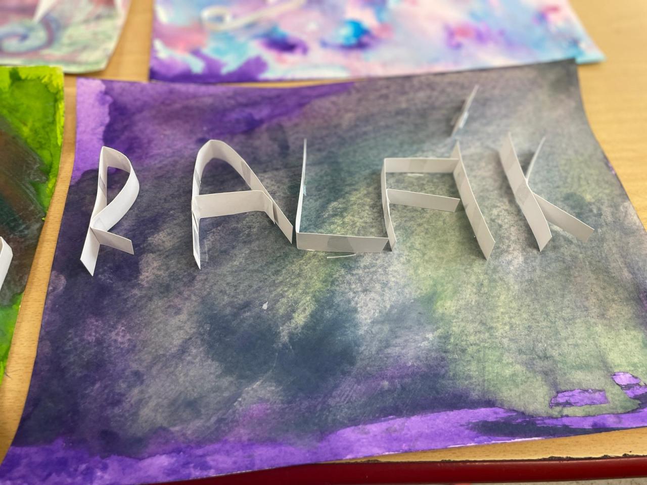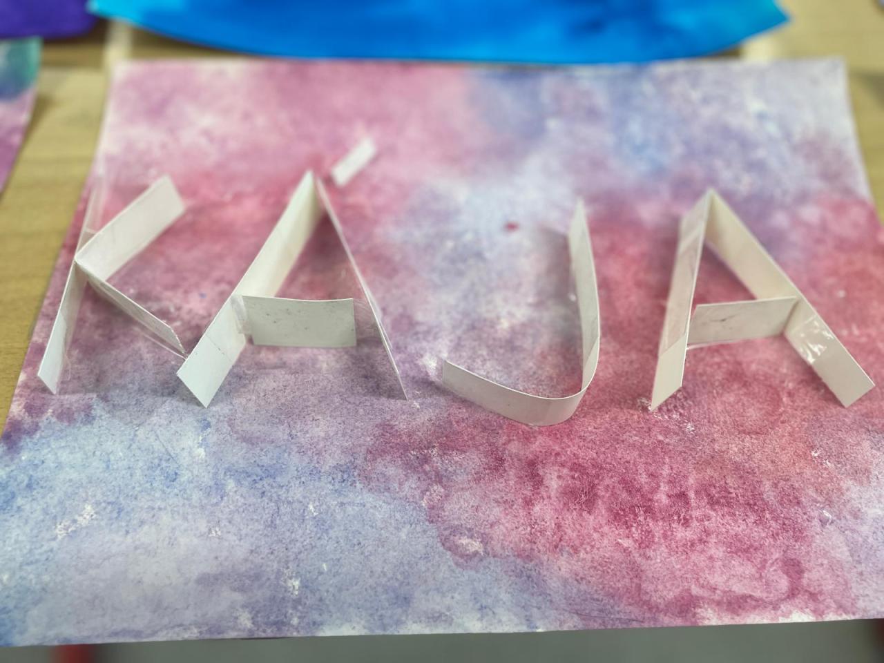 Deváťáci si pohráli s barvami i prostorem – na barevný podklad z čtvrtky postavili z papírových proužků 3D nápisy svých jmen. Výsledek? Veselé a originální plastické obrazy, které doslova vystupují z papíru ????????????????????